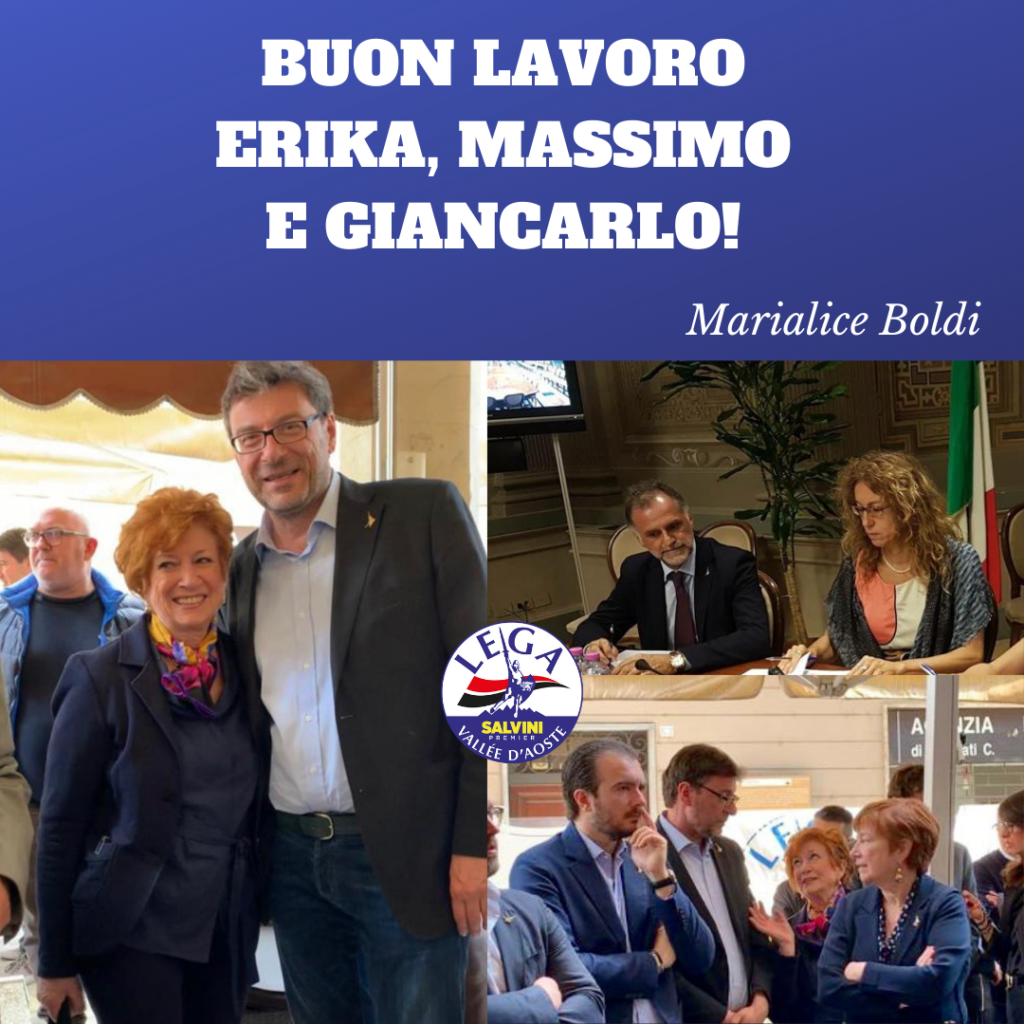 Quanto poi alla scelta dei nostri Ministri, dando per scontata la loro competenza, la loro statura politica e la loro profonda fede leghista, la conoscenza personale che abbiamo con loro non potrà che essere d’aiuto nel favorire i necessari contatti utili anche alla ripartenza della Valle d’Aosta, soprattutto pensando alla valenza dei Ministeri loro assegnati.