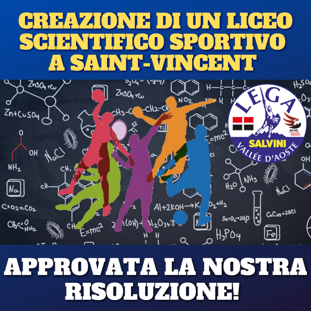 Il Consiglio ha approvato all’unanimità la nostra risoluzione, depositata insieme ai Gruppi Pour l’Autonomie e Misto, che impegna il Vicepresidente della quinta Commissione consiliare ad avviare, entro 30 giorni, la calendarizzazione di audizioni preliminari finalizzate all’avvio di un lavoro di approfondimento volto alla possibile creazione di un liceo scientifico a indirizzo sportivo nella sede di via Monsignor Alliod a Saint-Vincent, anche valutando una sinergia con l’Istituto Gervasone di Châtillon.