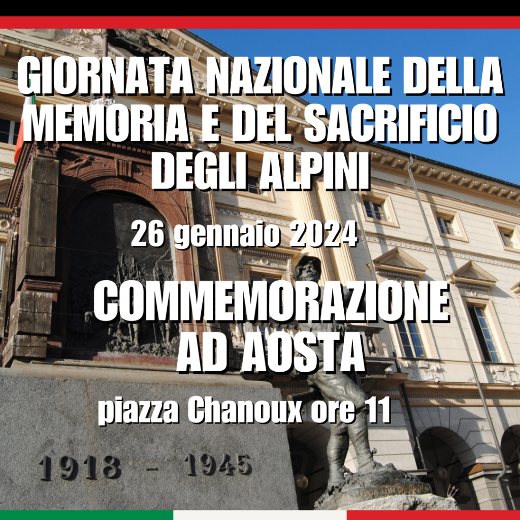 In occasione di tale evento, la Lega Vallée d’Aoste deporrà domani, 26 gennaio 2024 alle ore 11, una corona di fiori davanti al monumento al soldato valdostano di piazza Chanoux ad Aosta.