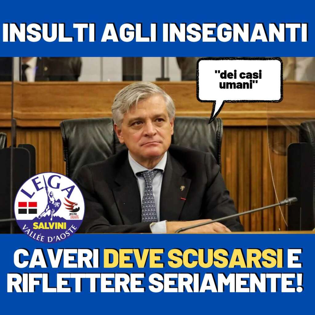 Per questi motivi, visti i numerosi problemi della scuola a cui Caveri non è stato in grado di dare una risposta e visti gli insulti rivolti al corpo docente e la conseguente delegittimazione di tutto il corpo insegnanti e considerato che ci sono stati figure istituzionali che si sono dimesse per molto meno, esprimiamo tutta la nostra solidarietà alle categorie vilipese dall’assessore Caveri invitandolo ad una seria riflessione ed alla formulazione di scuse pubbliche che risulteranno comunque sempre inferiori rispetto alla gravità degli epiteti espressi.