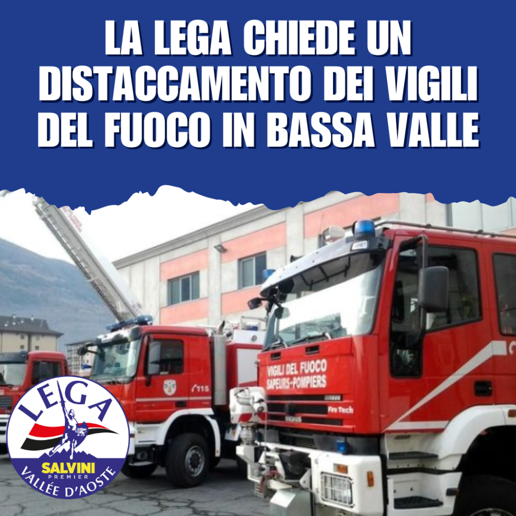 Il Gruppo Lega Vallée d’Aoste ha depositato oggi, venerdì 20 settembre, una mozione con cui sollecita il Governo regionale, di concerto col Corpo valdostano dei Vigili del Fuoco, ad istituire un distaccamento dei Vigili del Fuoco professionisti in Bassa Valle.