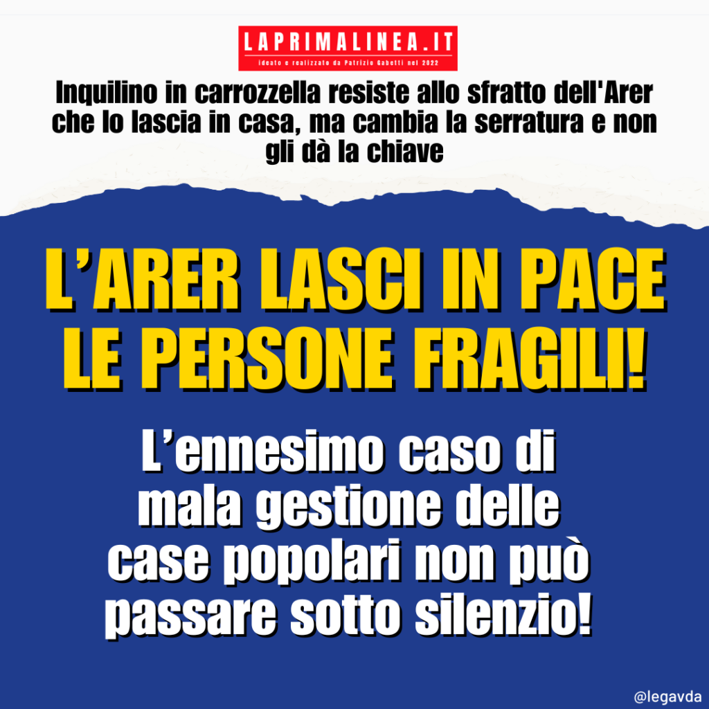 “Questo ennesimo caso – dichiara il Capogruppo della Lega Vallée d’Aoste Andrea Manfrin -, che si accompagna a decine di altri, altrettanto gravi, non può rimanere impunito. Chi ha sbagliato e continua a farlo, considerando le case popolari alla stregua di beni di lusso, dimenticandosi che sta operando con persone con profonde fragilità, deve pagare e caro, ed i vertici di Arer devono rispondere, assieme all’assessorato alle Politiche Sociali, della disperazione in cui stanno gettando decine di famiglie!”