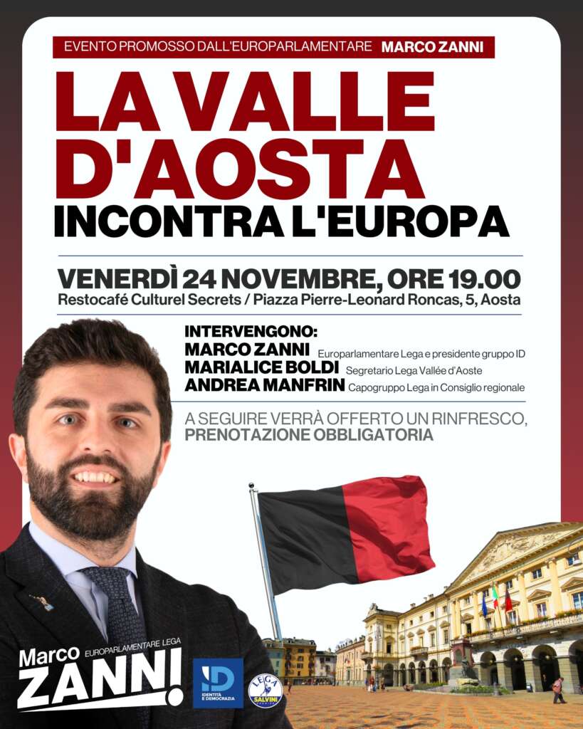 Venerdì 24 novembre sarà ad Aosta l’Europarlamentare della Lega Salvini Premier Marco Zanni, Presidente del Gruppo Identità e Democrazia.