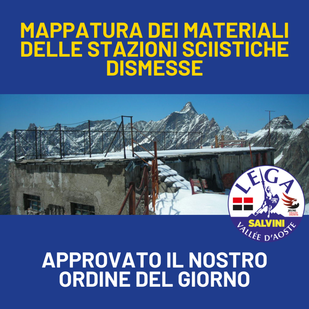 Il Consiglio regionale ha approvato all’unanimità un nostro ordine del giorno che impegna il Governo regionale a predisporre la mappatura delle attrezzature dei materiali di risulta delle installazioni sciistiche dismesse sull’intero territorio regionale.