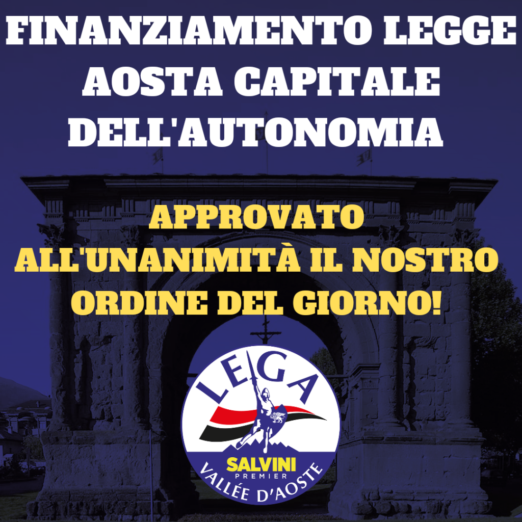 In Consiglio comunale è stato approvato all’unanimità il nostro ordine del giorno, presentato insieme a tutti i gruppi di opposizione, per il rifinanziamento della legge di “Aosta capitale dell’Autonomia”.