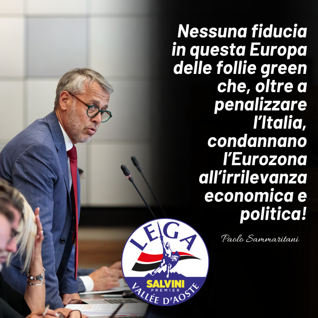 “Nessuna fiducia in questa Europa delle follie green che , oltre a penalizzare l’Italia, condannano l’Eurozona all’irrilevanza economica e politica. Solo il voto dei cittadini potrà cambiare il baricentro politico dell’Unione Europea e ridarci dignità a casa nostra e nel mondo“.