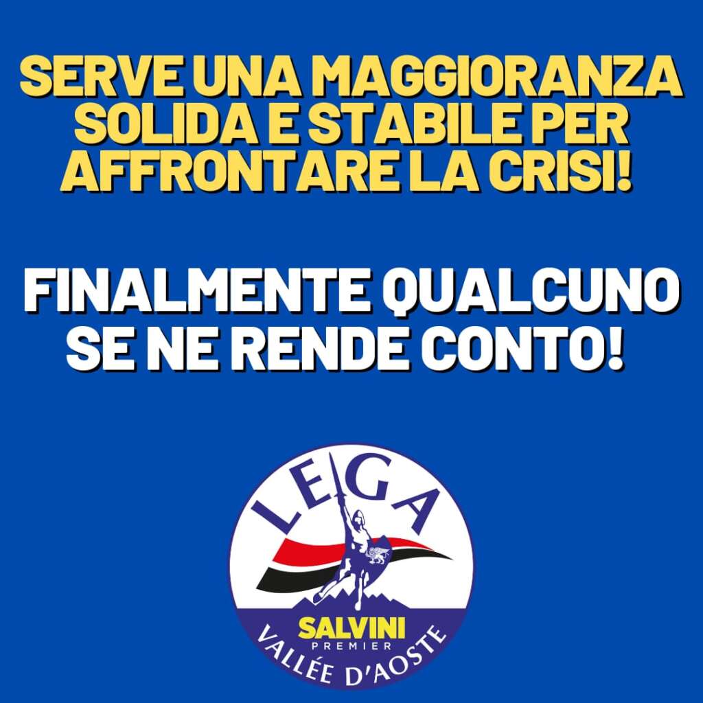 I Gruppi consiliari di Forza Italia Valle d’Aosta e Lega Vallée d’Aoste, a seguito delle dichiarazioni riportate nel corso degli ultimi giorni sugli organi di stampa, formulate da significative componenti dell’attuale maggioranza, prendono atto che, finalmente, ci si rende conto di come sia indispensabile poter contare su di una maggioranza solida e politicamente stabile per affrontare le difficoltà che in questo difficile momento attanagliano i nostri concittadini.