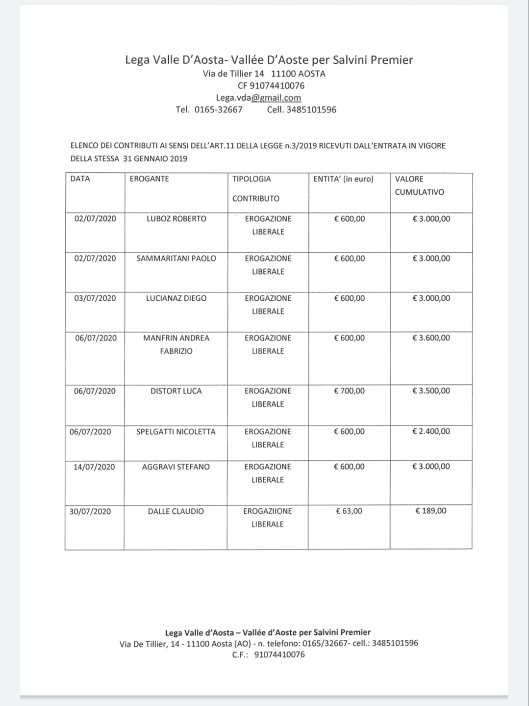 i contributi del mese di luglio