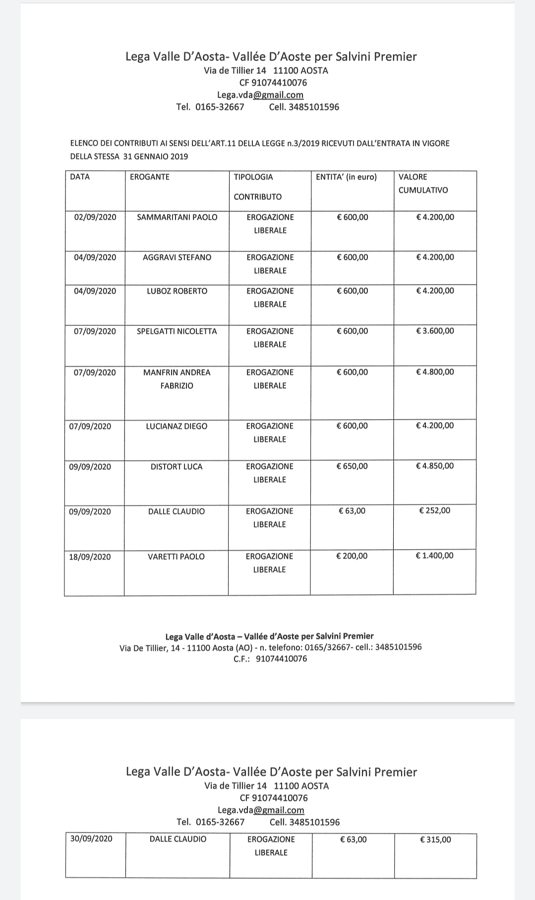 i contributi del mese di settembre
