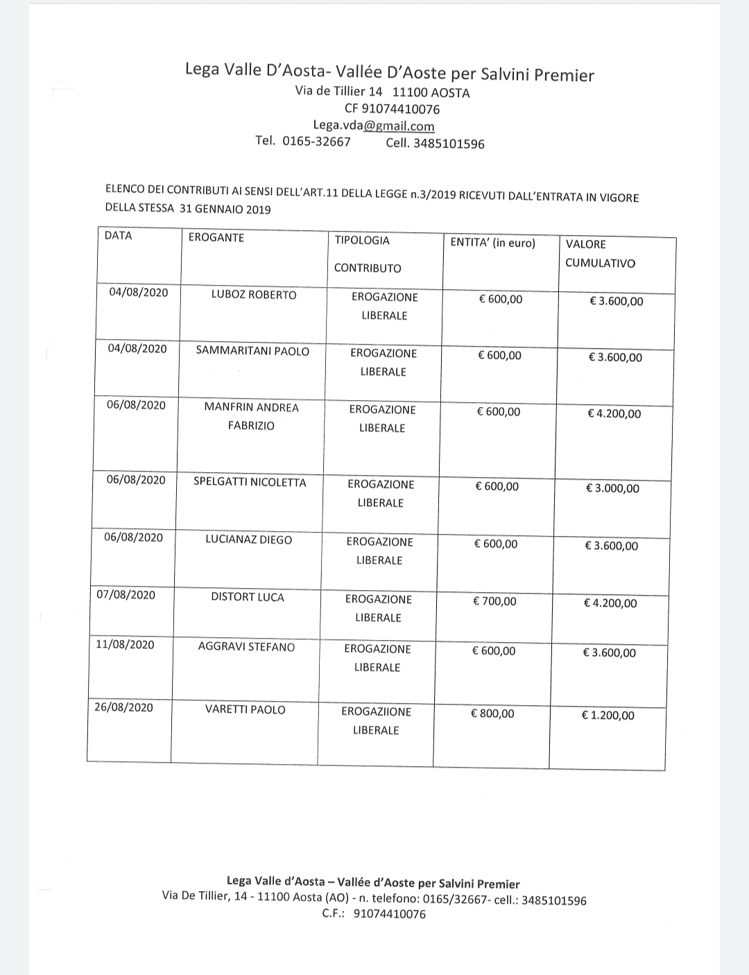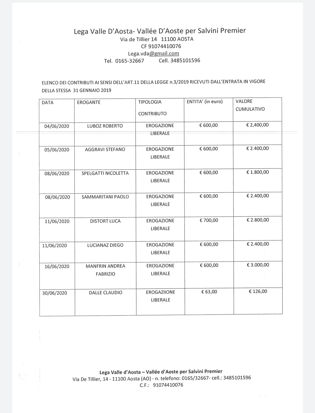 i contributi del mese di giugno