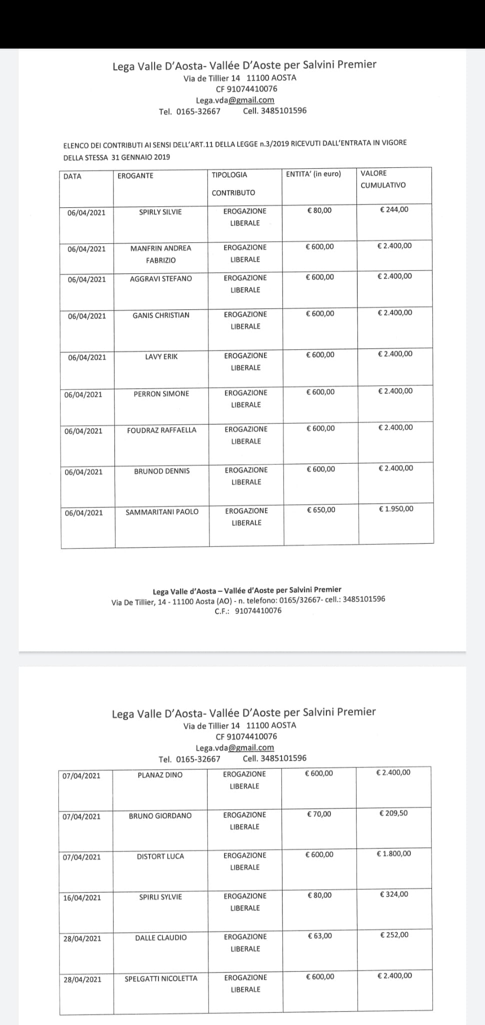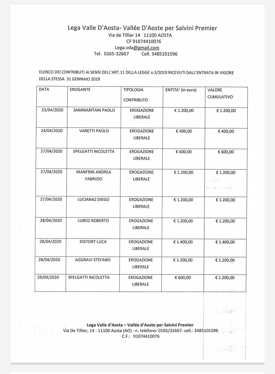 I contributi del mese di Aprile