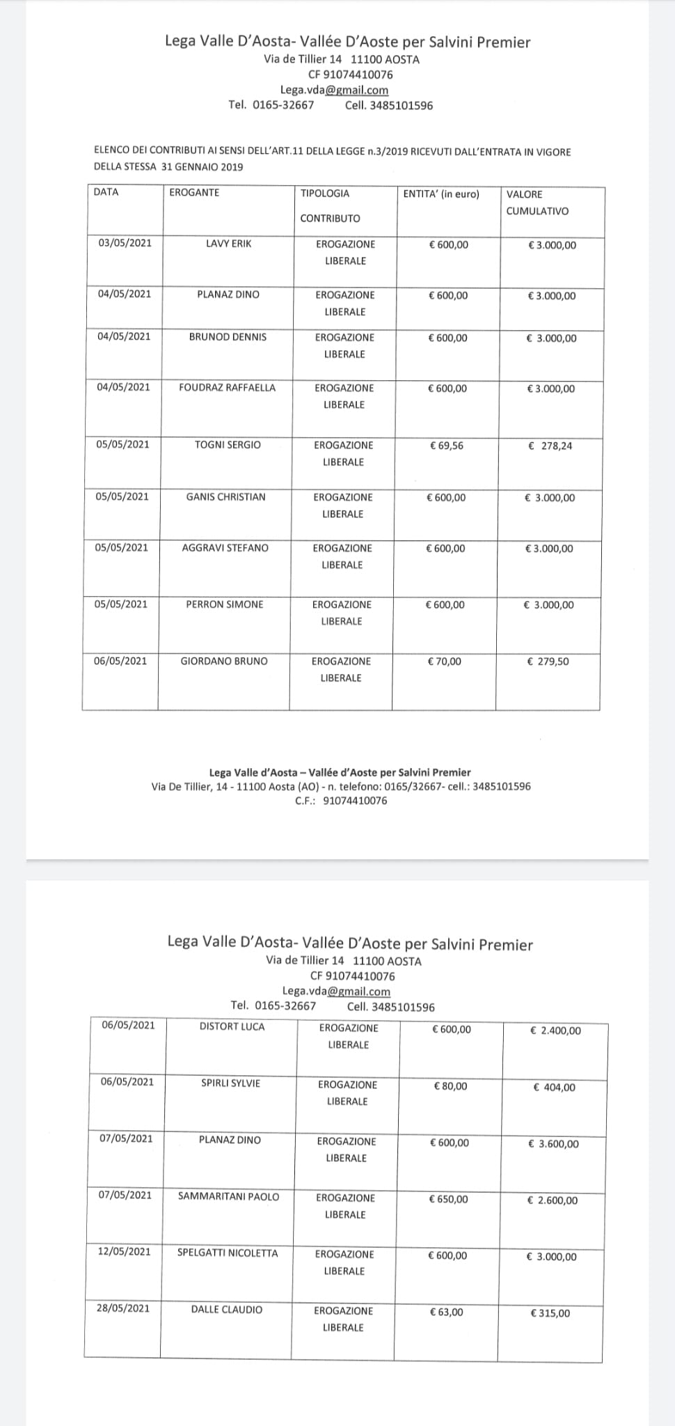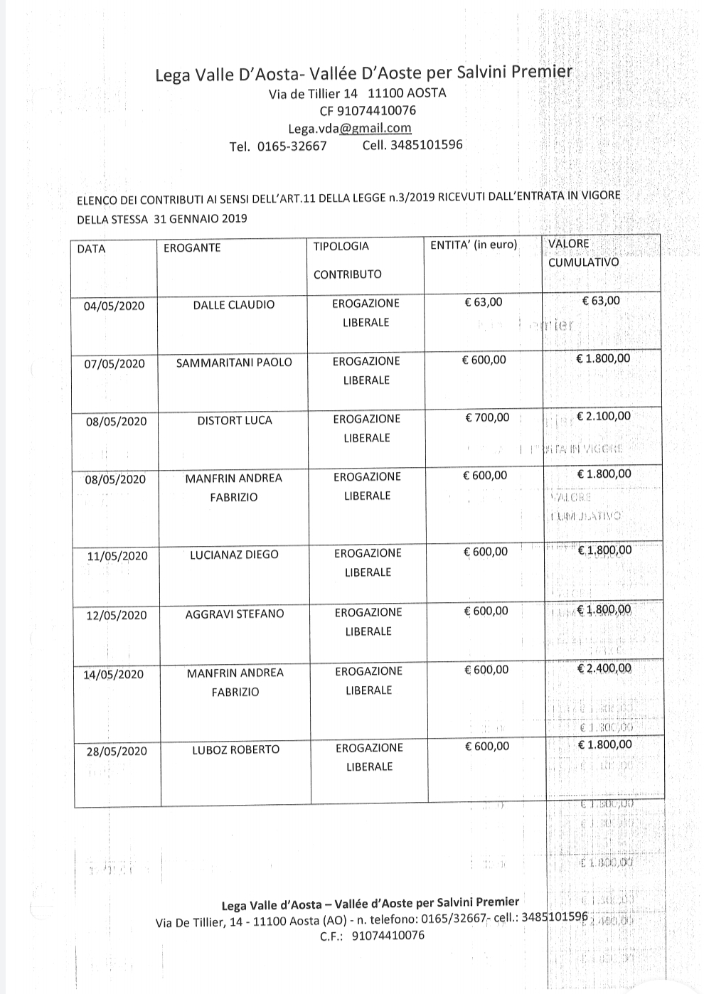 I contributi del mese di Maggio