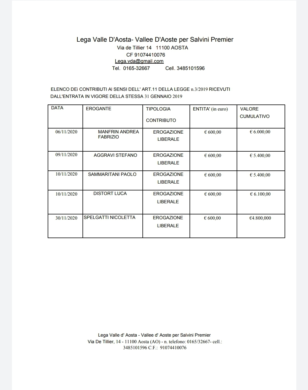 i contributi del mese di novembre