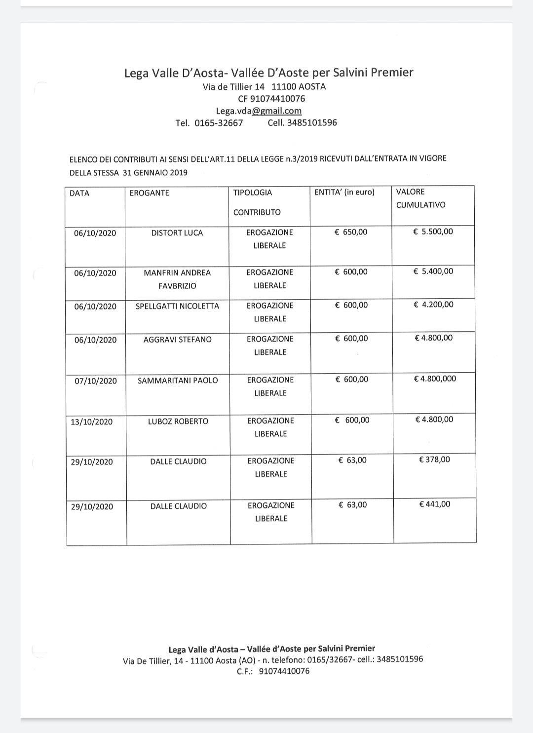 i contributi del mese di ottobre