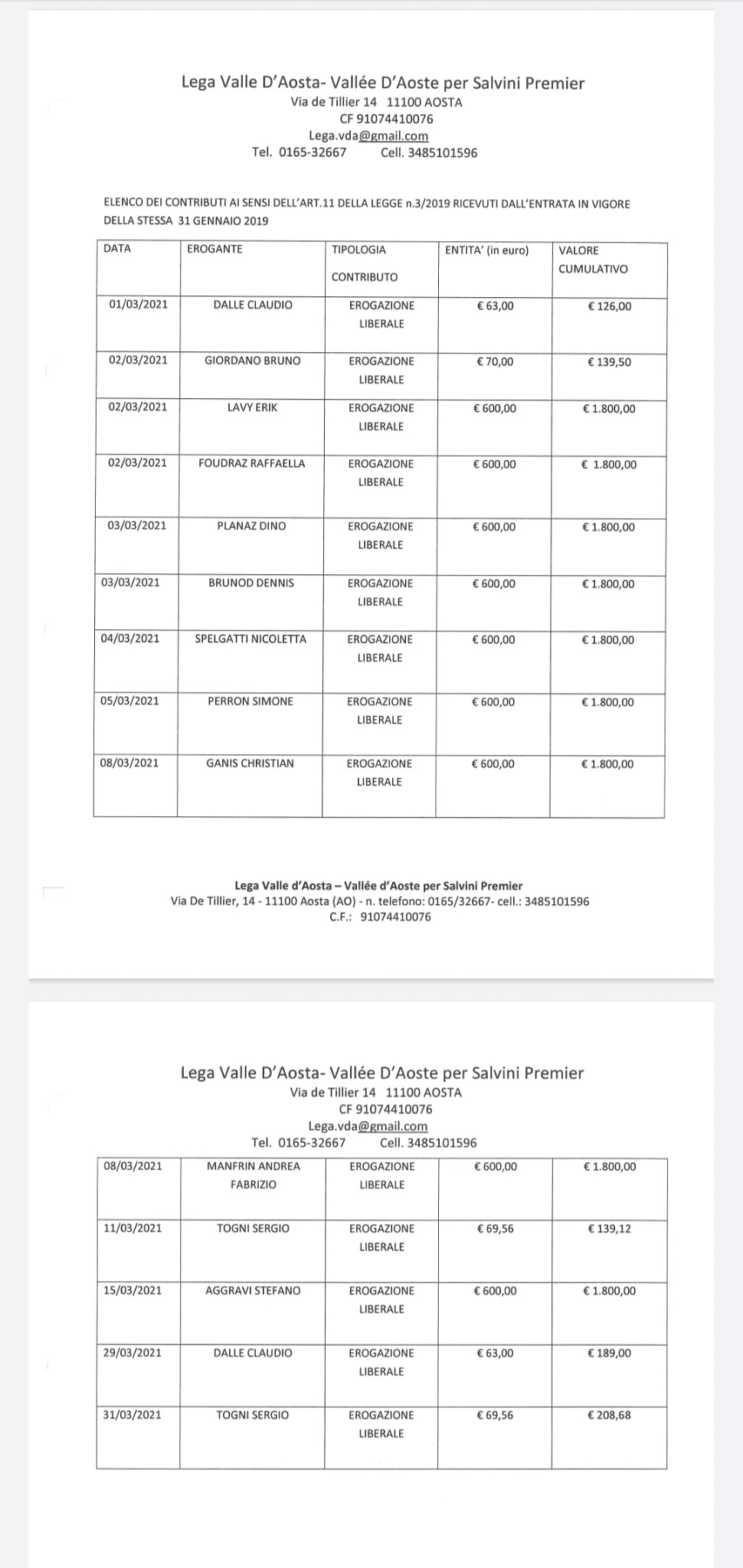 I contributi del mese di Marzo