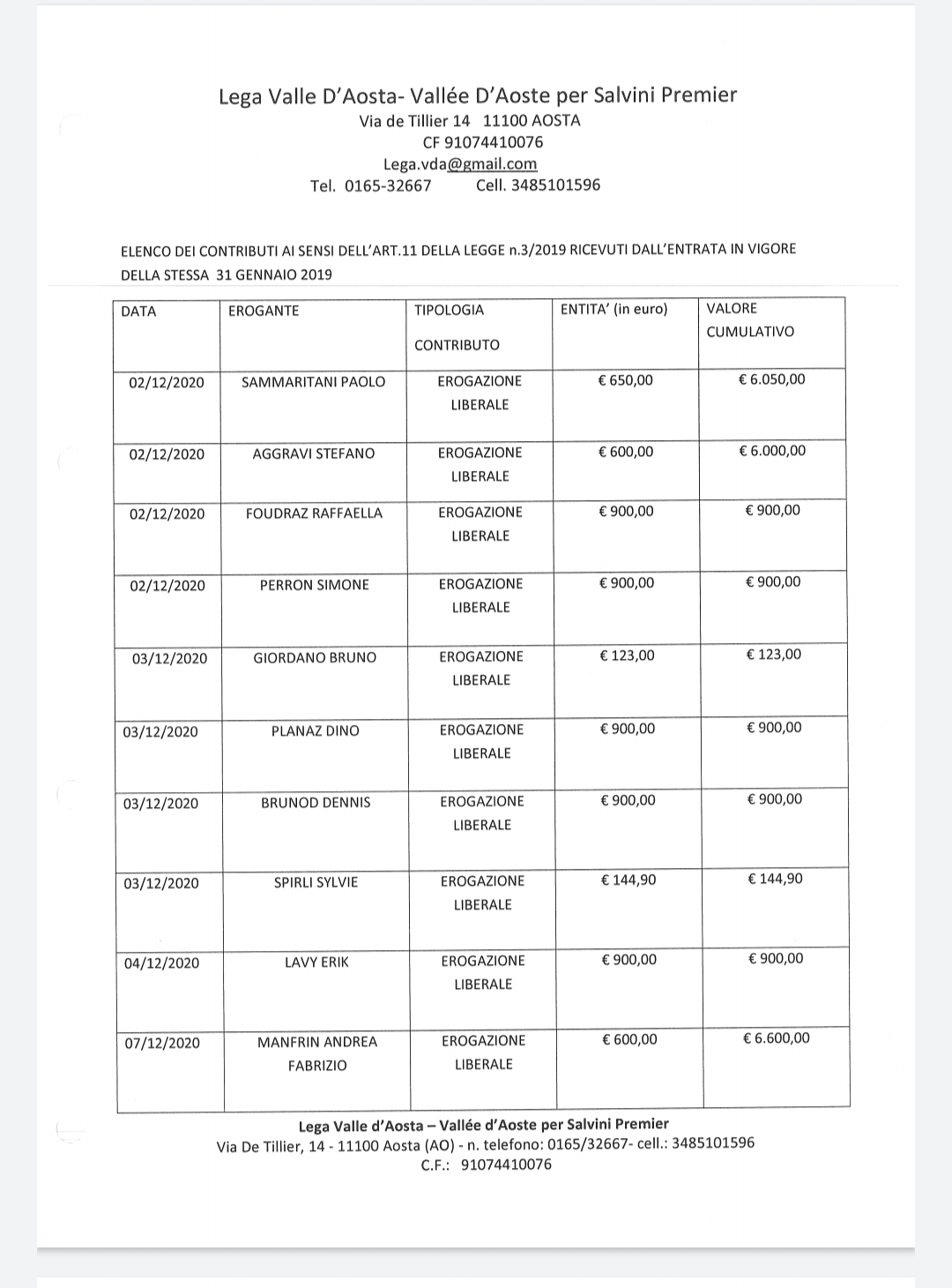 i contributi del mese di novembre