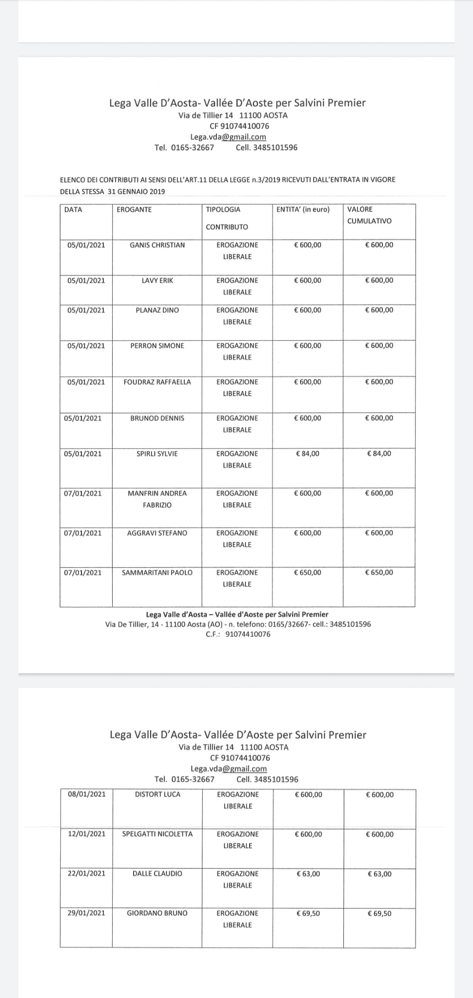 I contributi del mese di gennaio